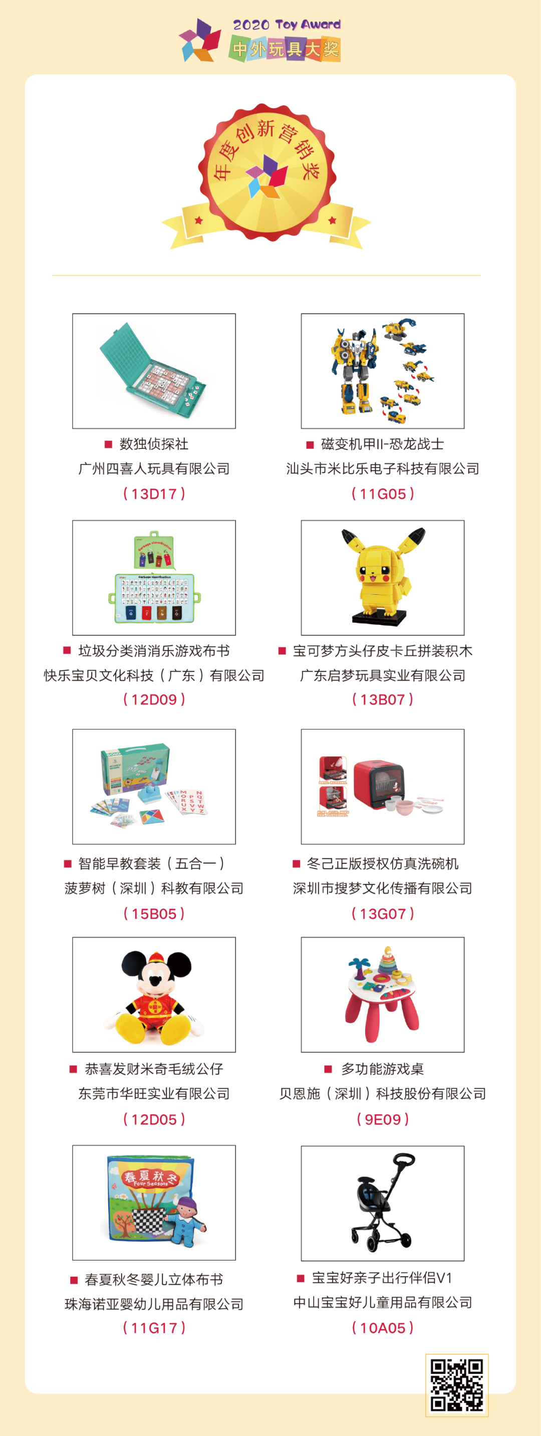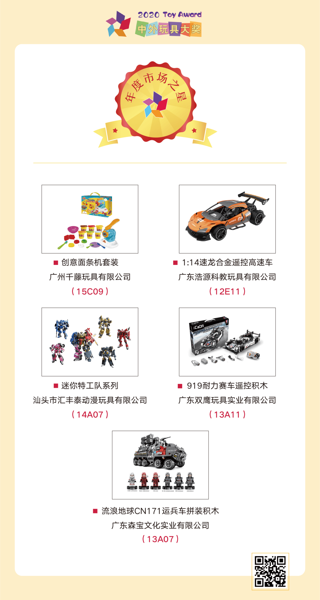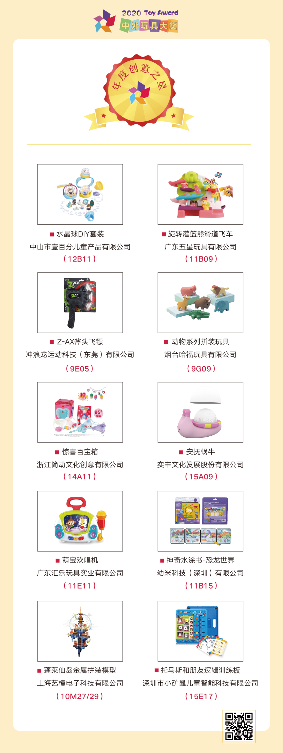 日前,大獎(jiǎng)組委會(huì)正式宣布:綜合專家評(píng)審、媒體評(píng)審、大眾評(píng)審三個(gè)階段的評(píng)審結(jié)果,最終71個(gè)優(yōu)秀產(chǎn)品、10個(gè)玩具品牌脫穎而出,成功獲獎(jiǎng)。