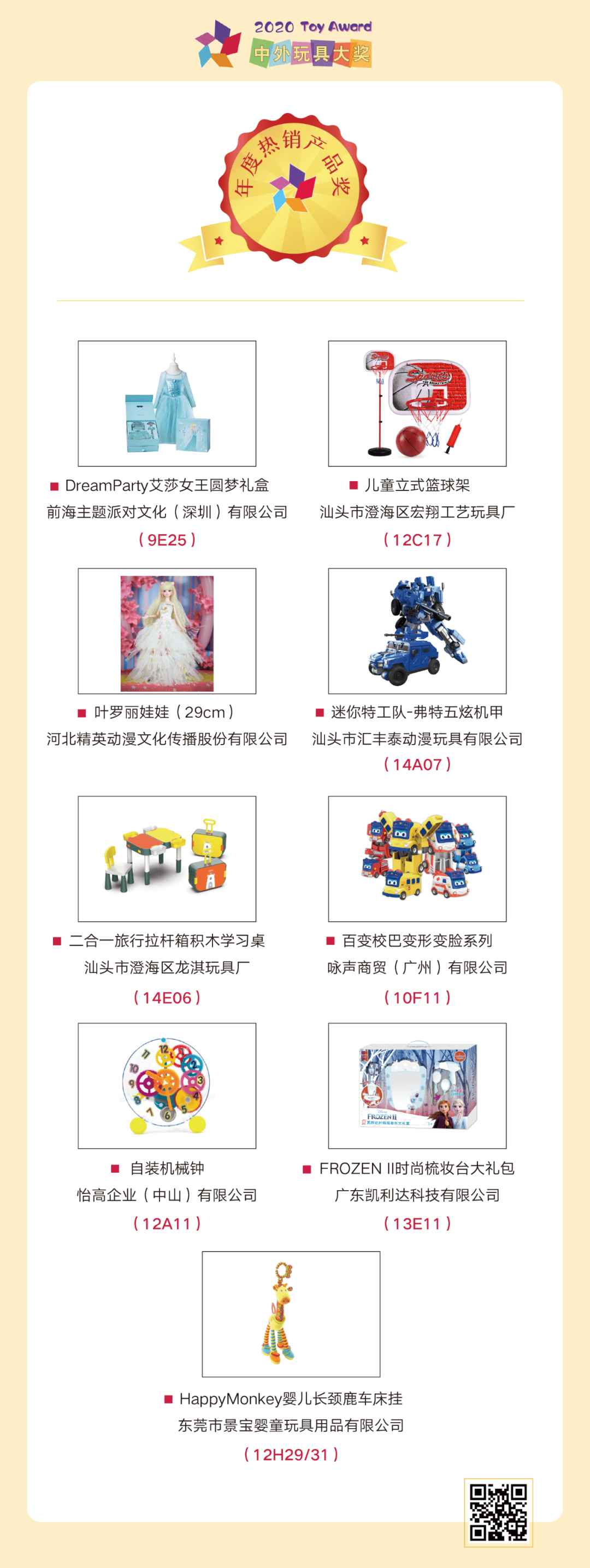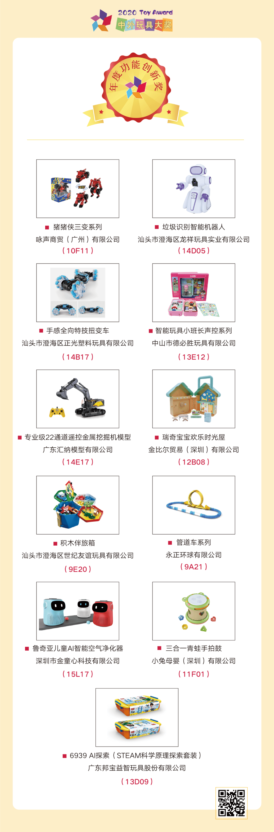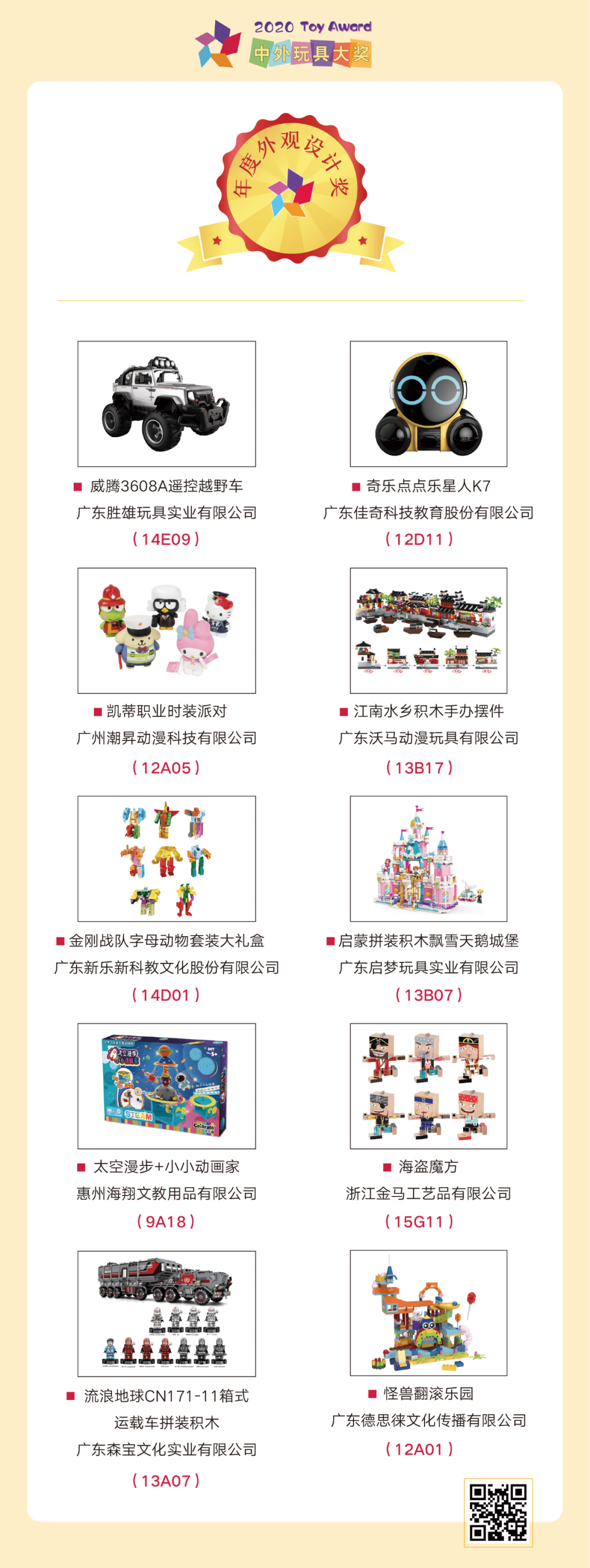 日前,大獎(jiǎng)組委會(huì)正式宣布:綜合專家評(píng)審、媒體評(píng)審、大眾評(píng)審三個(gè)階段的評(píng)審結(jié)果,最終71個(gè)優(yōu)秀產(chǎn)品、10個(gè)玩具品牌脫穎而出,成功獲獎(jiǎng)。