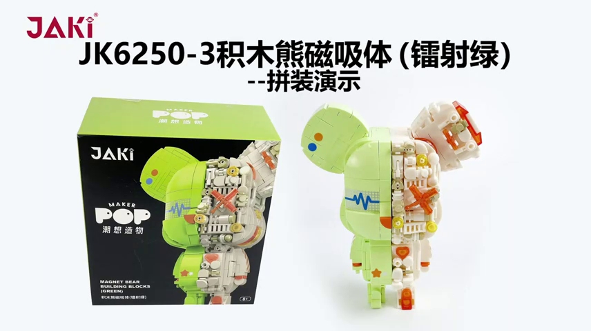 JK6250-3積木熊磁吸體(鐳射綠)---拼裝演示
