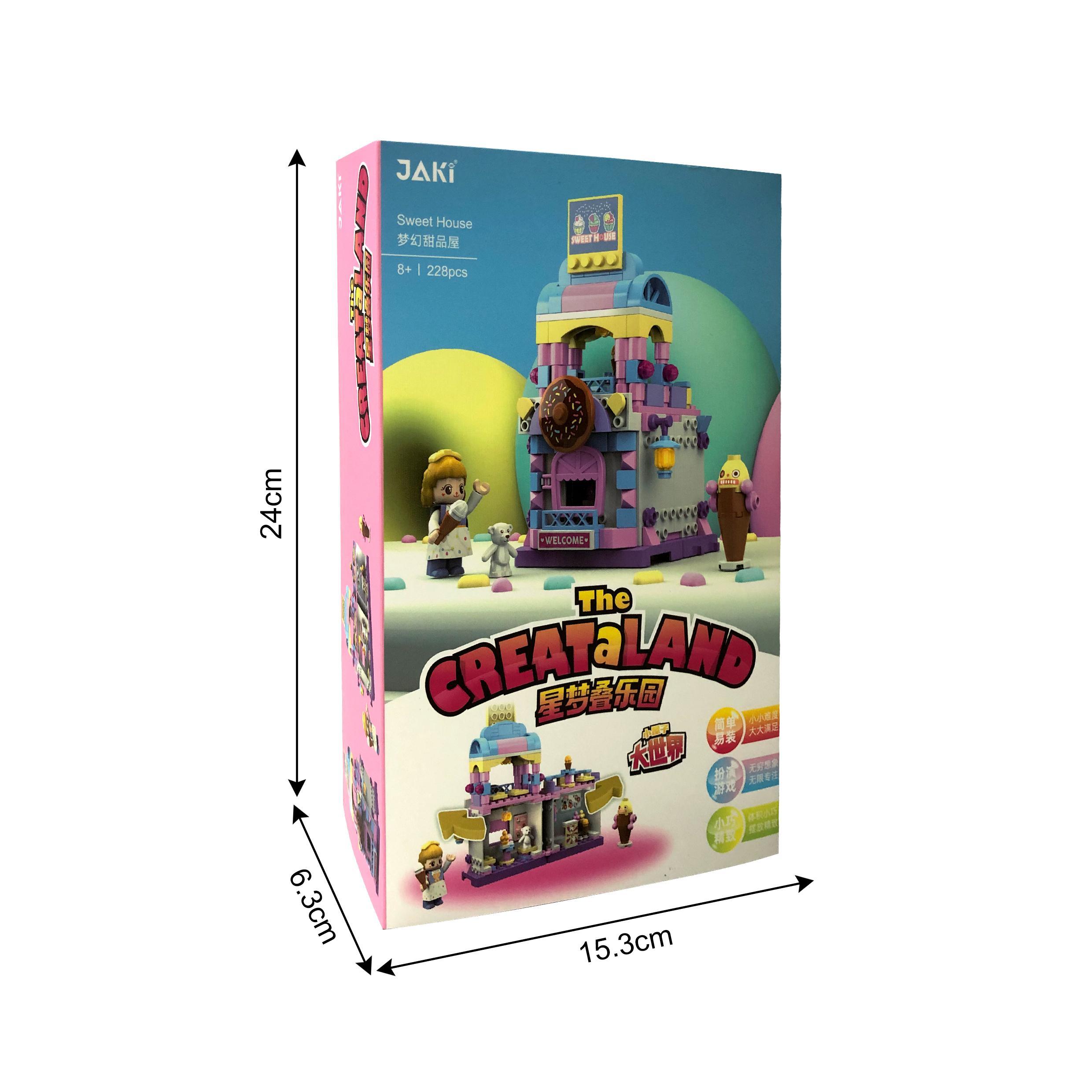 吃甜品的時候是快樂的,那么自己搭一個甜品屋,將會是快樂的升級版,我們希望每一位玩家可以在拼搭過程中感受到甜美的味道。粉紅、粉藍(lán)和粉黃,整個甜品屋都是粉色系,這顯然是為了女孩子量身打造的。唯一反差較大的,是墻上掛著的灑滿糖果的棕色巧克力餅干,因為它,香味已經(jīng)彌漫整個甜品屋。整個甜品屋分為上下2層,底下是甜品售賣前臺,這里有五彩繽紛的冰淇淋、雪糕、雪球等,還有治愈系的的熊娃娃,一個人在這里享用美食也不會孤單。屋外還有一個智能服務(wù)機(jī)器人,有一種說不出的天然呆,制作好的甜品由它遞到客人的餐桌上。上邊一層是用餐區(qū),制作出來的美味甜點在這里供客人享用。你喜歡哪種口味的甜品呢,在這里,你說了算。