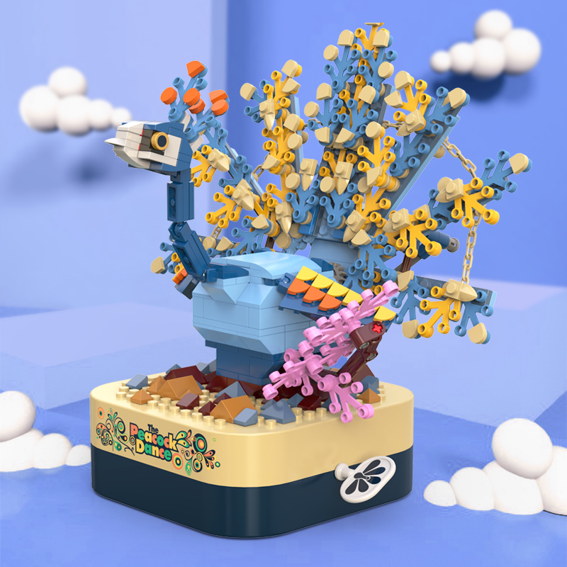 將積木與音樂盒完美結(jié)合,好玩又時尚。純機械動力設計更環(huán)保,音樂盒發(fā)條轉(zhuǎn)動帶動孔雀展開羽毛,益智拼搭,時尚美觀,還能充當家居精品擺件。